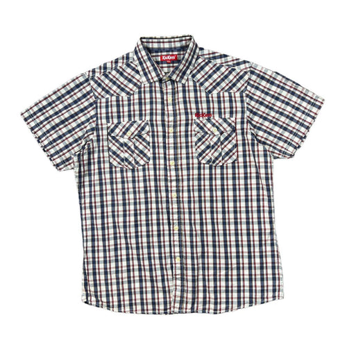 Early 00's KICKERS Embroidered Mini Logo Plaid Check Short Sleeve Cotton Shirt