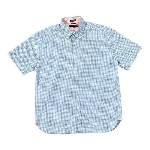 TOMMY HILFIGER "80's 2 Ply Fabric" Plaid Check Mini Logo Short Sleeve Button-Up Shirt