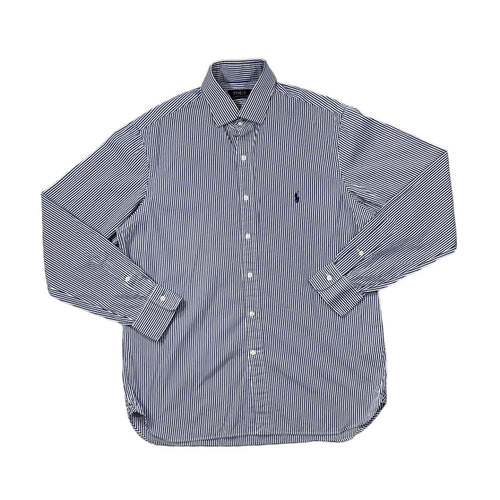 POLO RALPH LAUREN Classic Embroidered Mini Logo Blue White Striped Long Sleeve Cotton Shirt