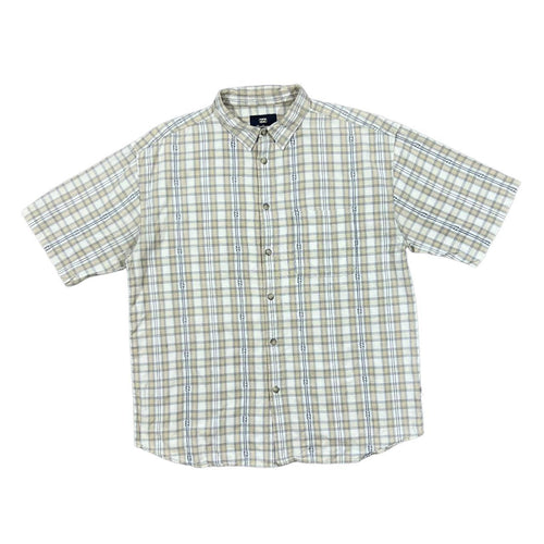 Early 00's BILLABONG Beige White Check Surfer Skater Short Sleeve Cotton Shirt