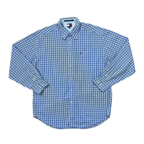 Vintage TOMMY HILFIGER Classic Embroidered Mini Logo Plaid Check Long Sleeve Cotton Shirt
