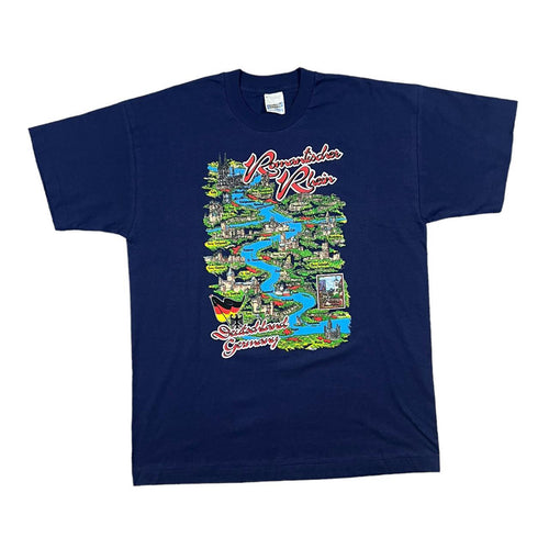 Vintage 90's Screen Stars ROMANTISCHER RHEIN "Germany" Souvenir Map Spellout Graphic Single Stitch T-Shirt
