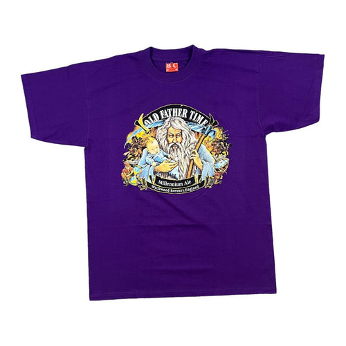 Vintage 90's MILLENNIUM ALE "Old Father Time" Wychwood Brewery Drinks Spellout Graphic T-Shirt
