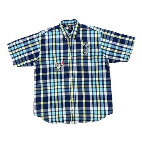 Vintage WARNER BROS STUDIO STORE (1997) Looney Tunes Taz Bugs Bunny Golf Checked Button-Up Shirt