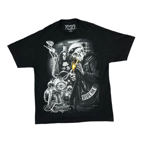 RIDE OR DIE Gothic Biker Skeleton Spellout Graphic T-Shirt