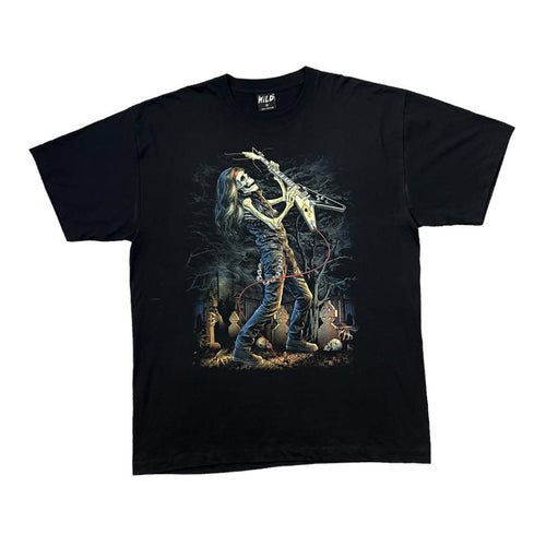 Early 00's WILD Gothic Fantasy Skeleton Guitarist Music Graphic T-Shirt