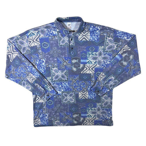 Vintage C&A Crazy Abstract Patterned Blue Mix Long Sleeve Polo Shirt