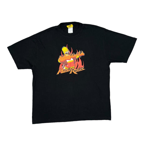 THE SIMPSONS "Homer Rocks" Homer Flaming Guitar TV Show Spellout Graphic T-Shirt