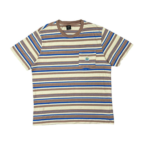HUF Classic Embroidered Mini Pocket Logo Multi Striped Short Sleeve Cotton T-Shirt