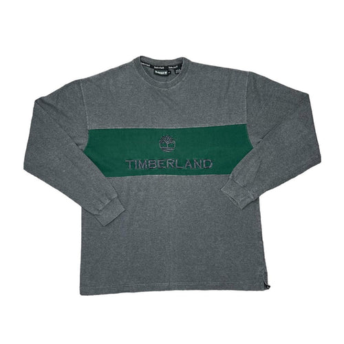 Vintage 90's TIMBERLAND Embroidered Big Logo Spellout Colour Block Long Sleeve T-Shirt