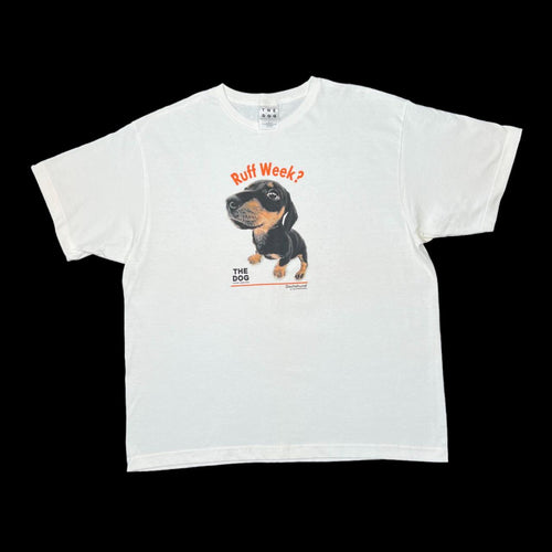 Early 00's The Dog Artist Collection RUFF WEEK? "Dachshund" Dog Puppy Novelty Spellout Graphic T-Shirt