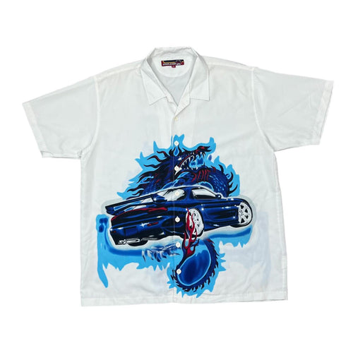 Early 00's DNON JEANS y2k Hip Hop Gothic Dragon Car Graphic Open Collar Polyester Shirt