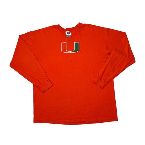 Vintage Nike Team NCAA MIAMI HURRICANES College Sports Spellout Graphic Long Sleeve T-Shirt