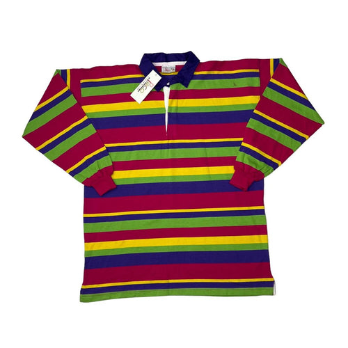 Vintage 90’s PACO Life In Colour Multi Colour Block Striped Long Sleeve Polo Shirt Sweatshirt