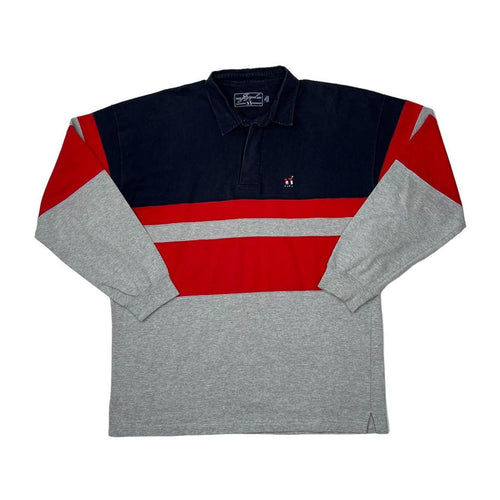 Vintage JEZEQUEL Colour Block Embroidered Mini Logo Long Sleeve Rugby Polo Shirt