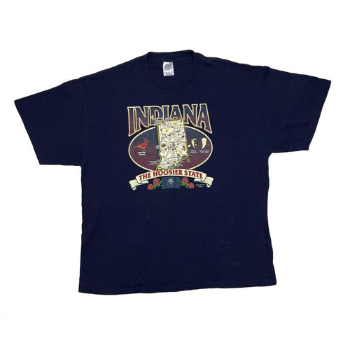 Early 00’s Delta INDIANA “The Hoosier State” Map Souvenir Spellout Graphic T-Shirt