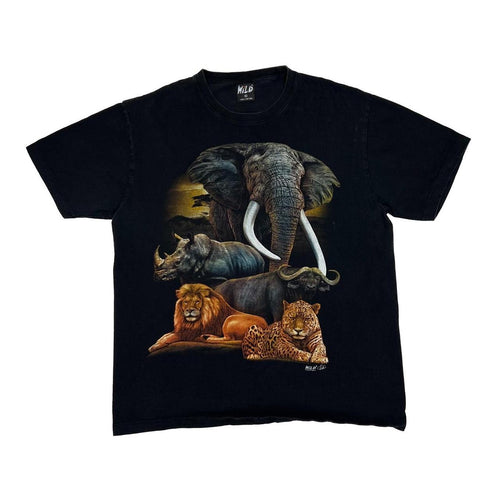 Vintage WILD Animal Nature Wildlife Elephant Lion Rhino Jaguar Graphic T-Shirt