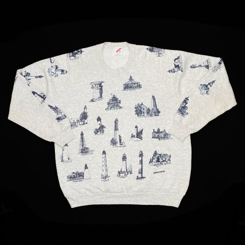 Jerzees MICHIGAN RAG CO Lighthouse All-Over Print Souvenir Graphic Sweatshirt
