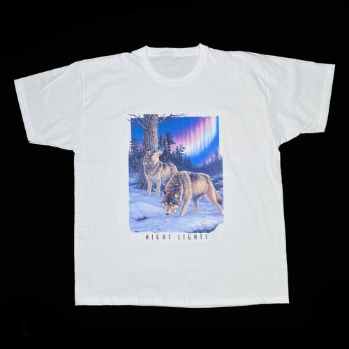 NIGHT LIGHTS Wolf Animal Nature Wildlife Forest Spellout Graphic T-Shirt