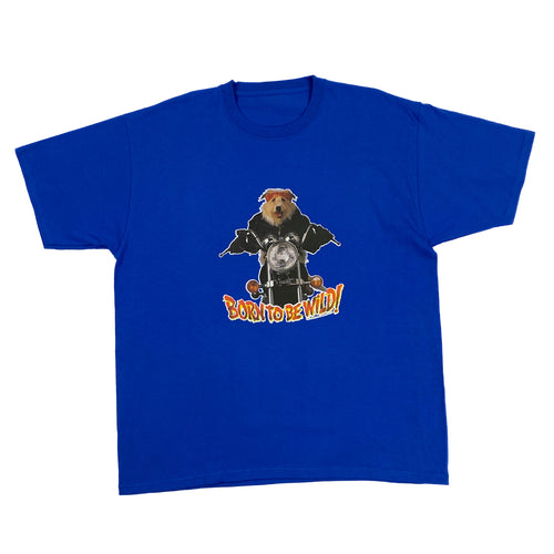 BORN TO BE WILD! (1992) Dog Biker Novelty Souvenir Spellout Graphic T-Shirt