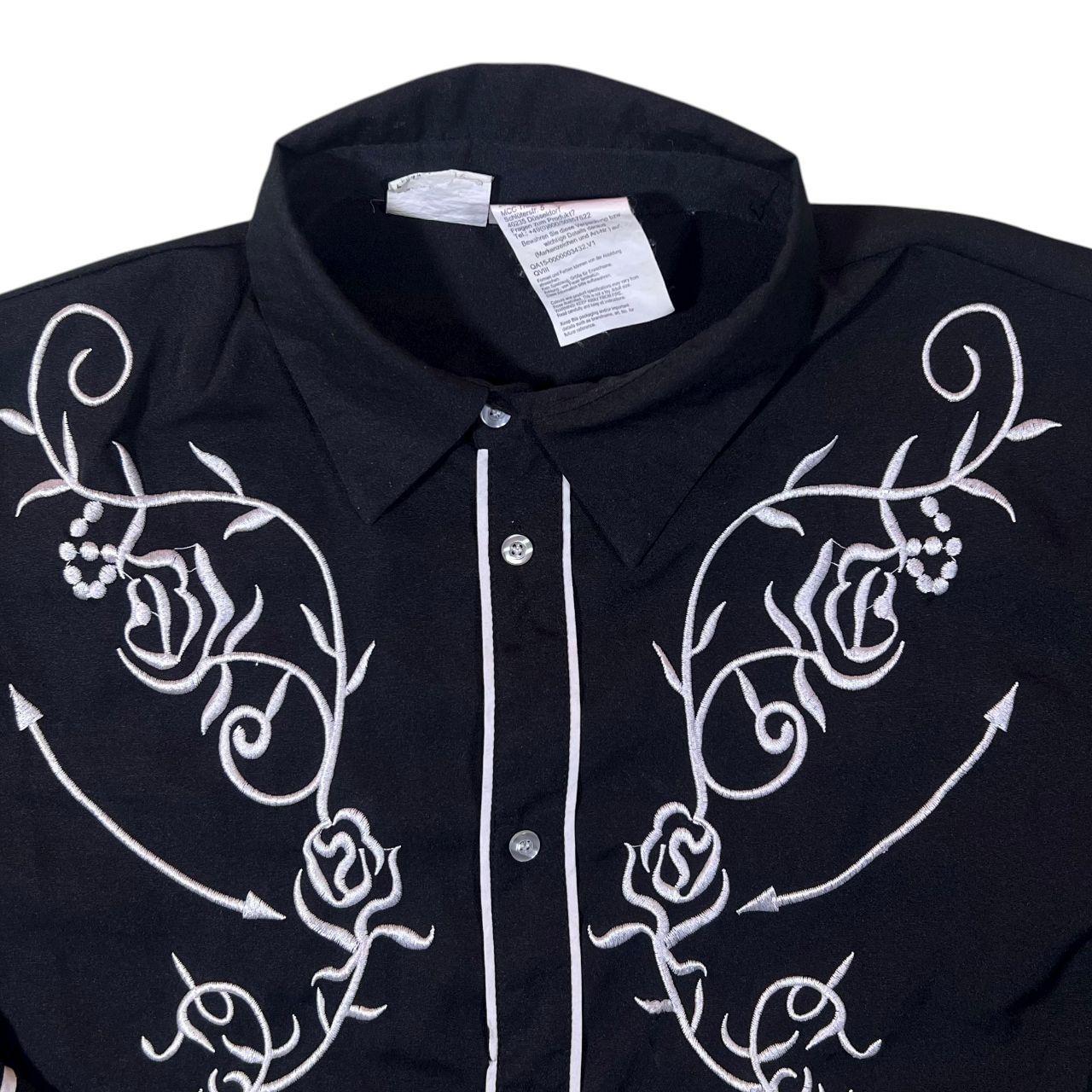 Cowboy Western Style Embroidered Floral Black Long Sleeve Polyester Shirt