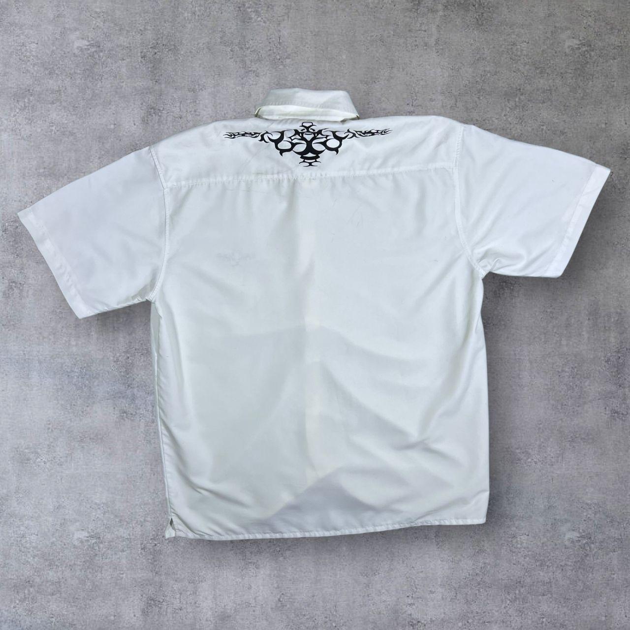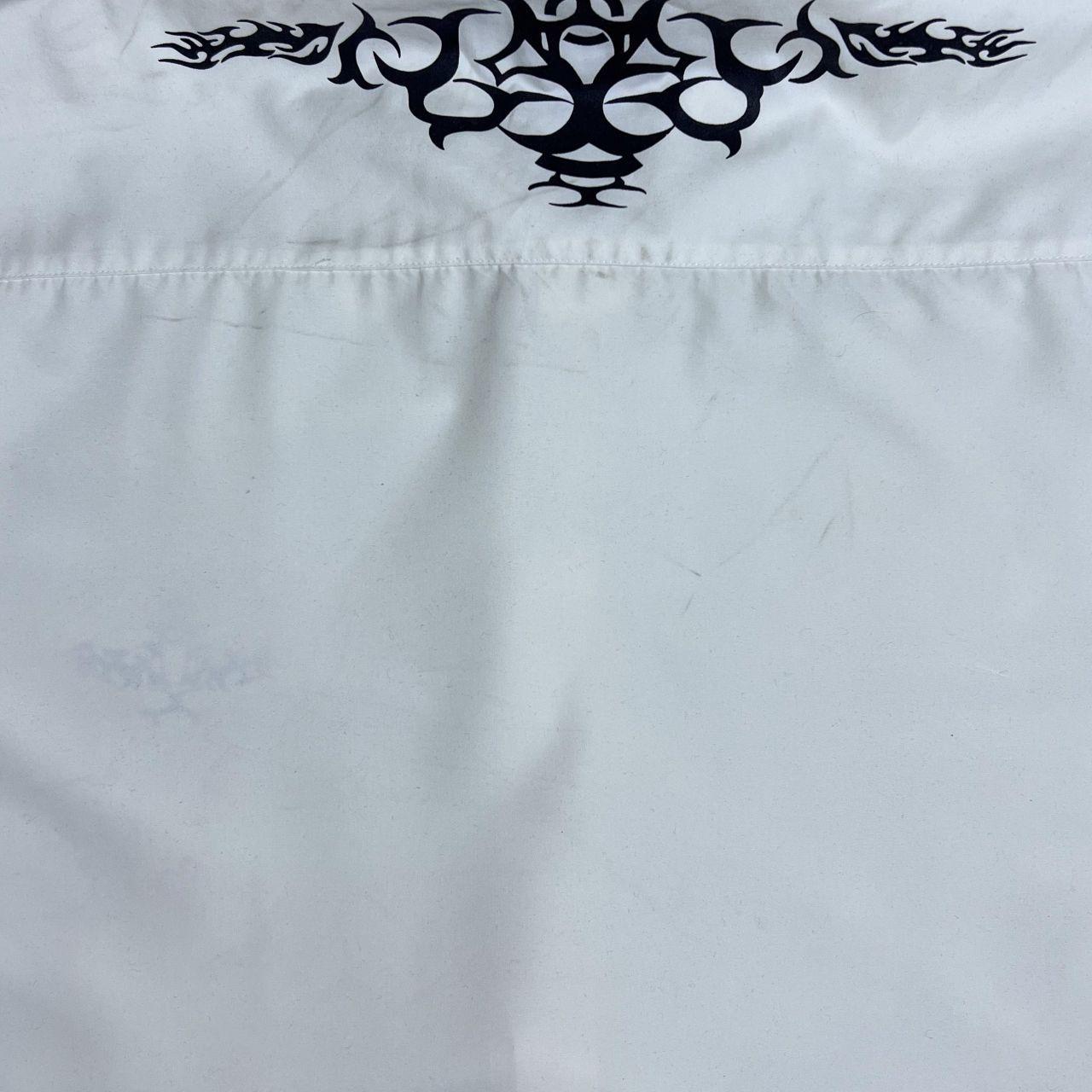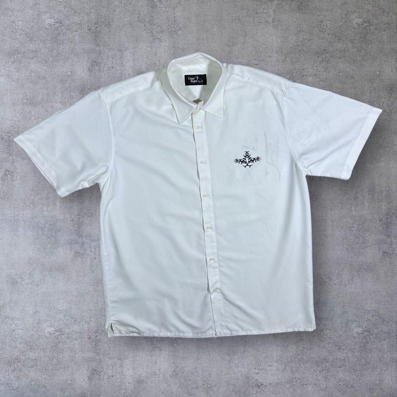 Early 00's Copy Right Gothic Y2K Tribal Motif White Short Sleeve Shirt