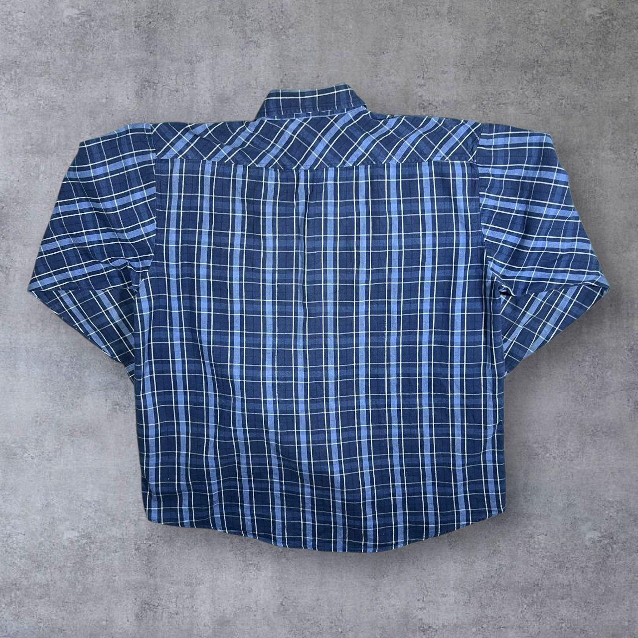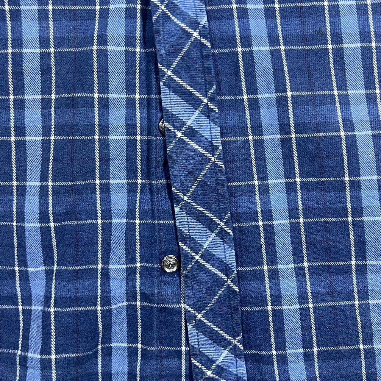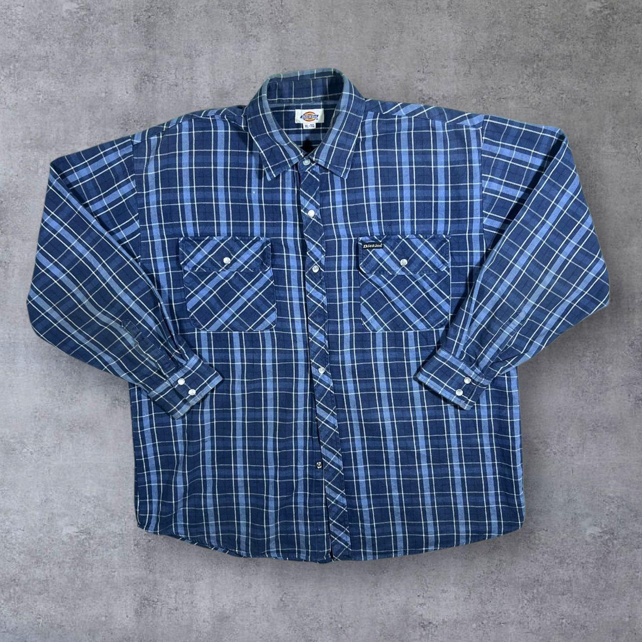 Early 00's Dickies Blue Plaid Check Long Sleeve Popper Flannel Shirt