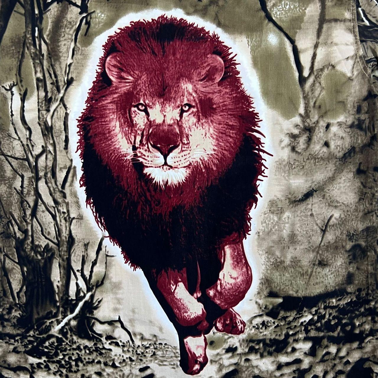Early 00's Ouijijia Lion Animal Nature Wildlife Graphic Short Sleeve Shirt