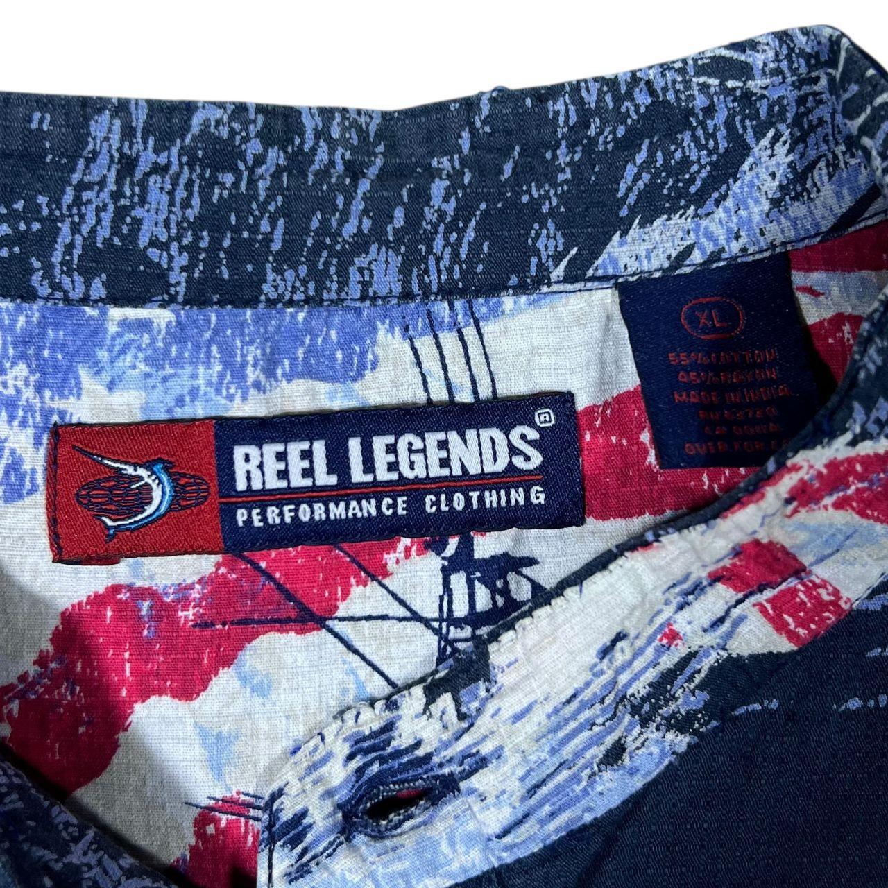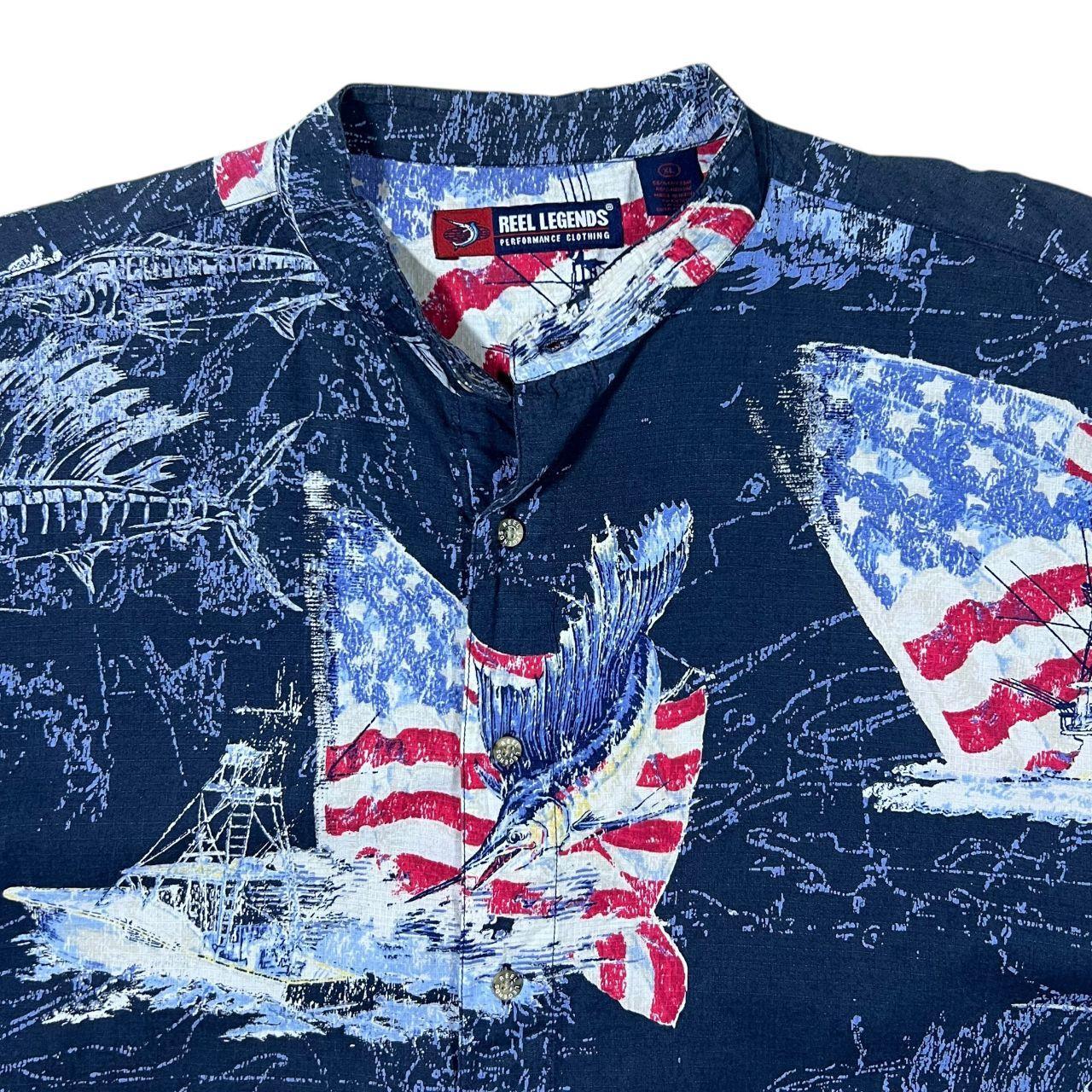 Reel Legends Fishing USA Patriotic All-Over Print Patterned Short Sleeve Grandad Collared Shirt