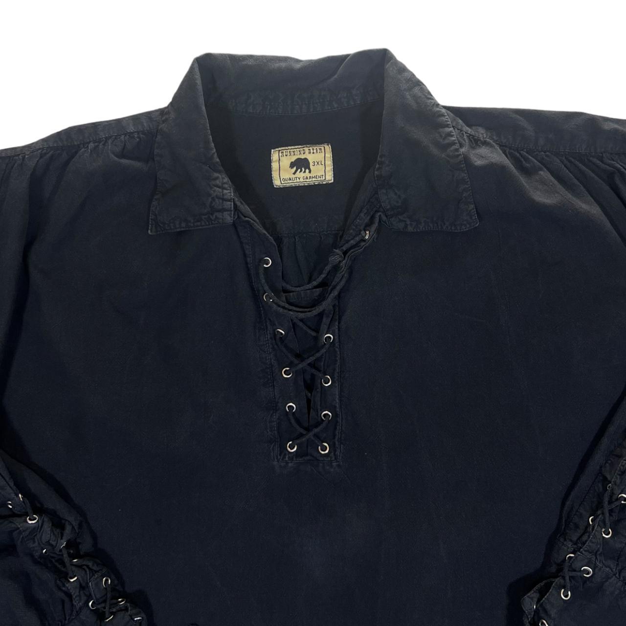• Load image into Gallery viewer, RUNNING BEAR Black Cotton Medieval Artist Lace-Up Smock Pullover Shirt
