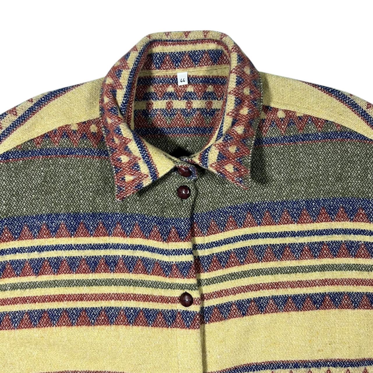 Vintage 90's Aztec Crazy Abstract Patterned Long Sleeve Wool Blend Flannel Over Shirt