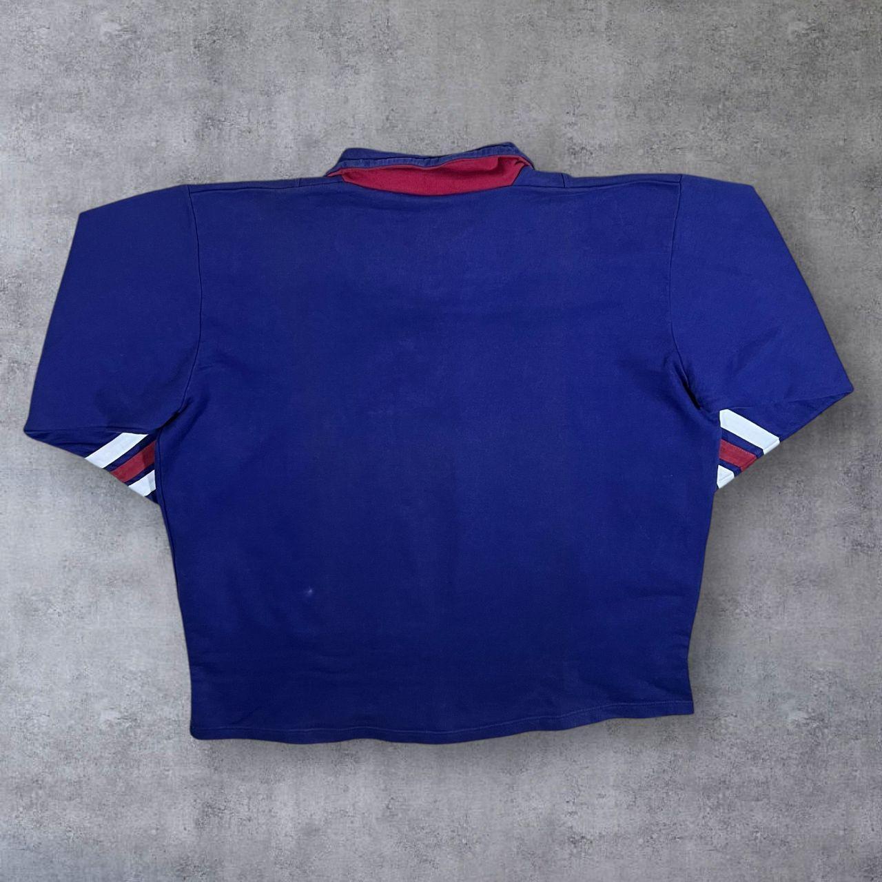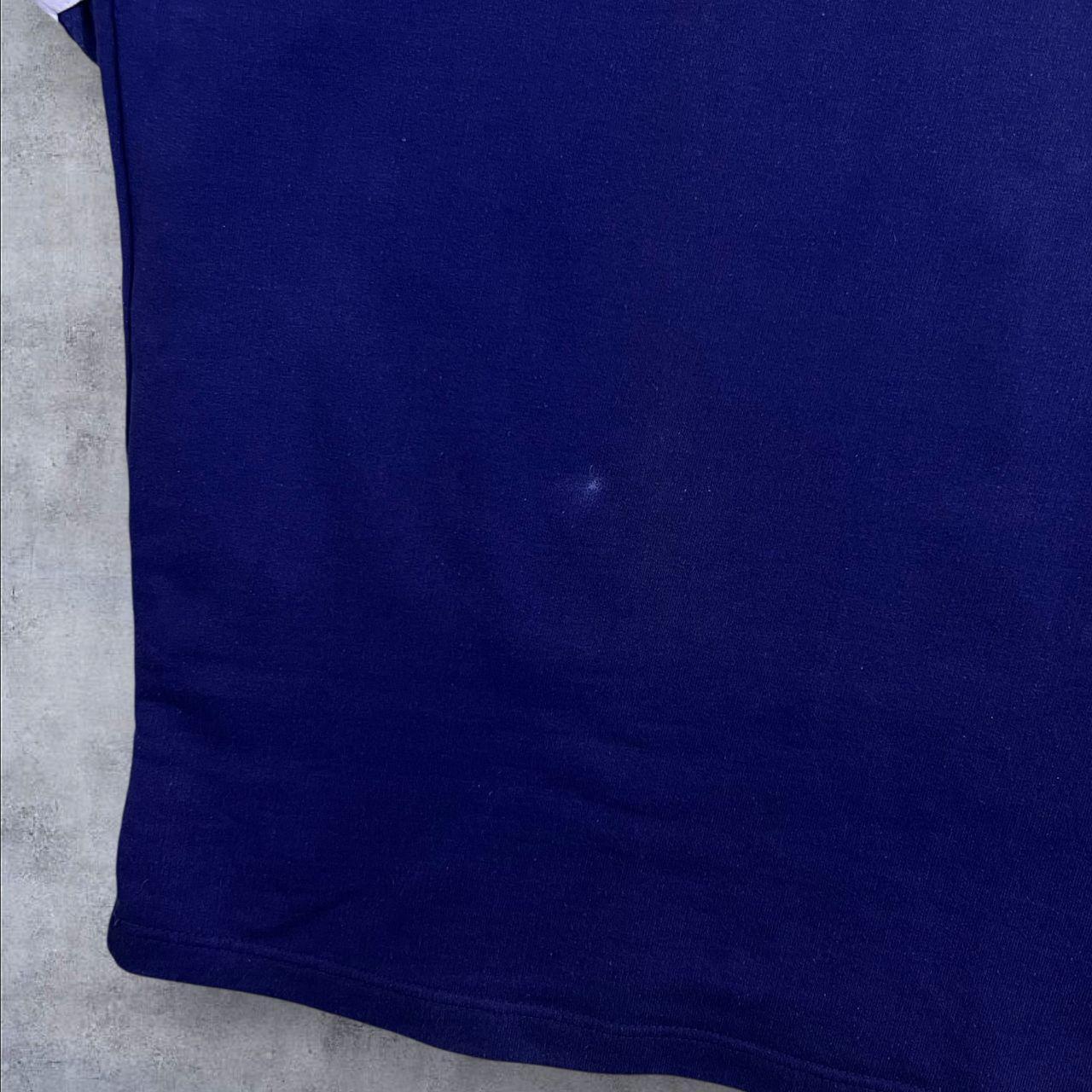 Vintage 90's Colour Block Striped Blue 1/4 Zip Cotton Pullover Sweatshirt