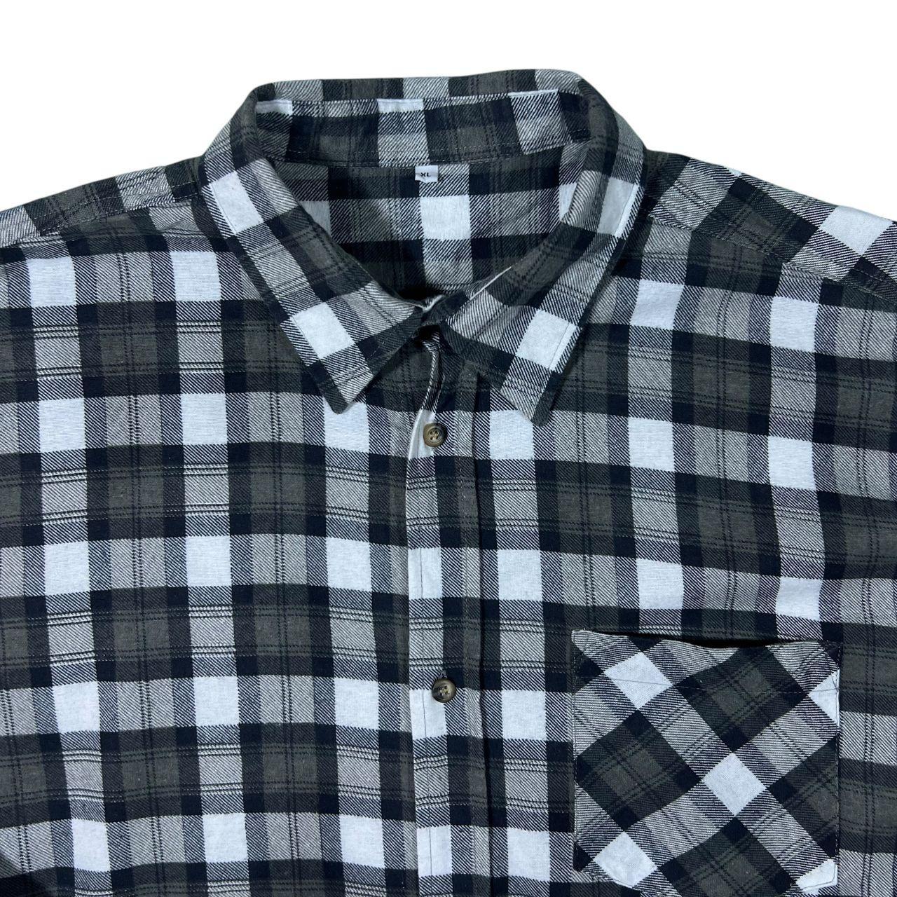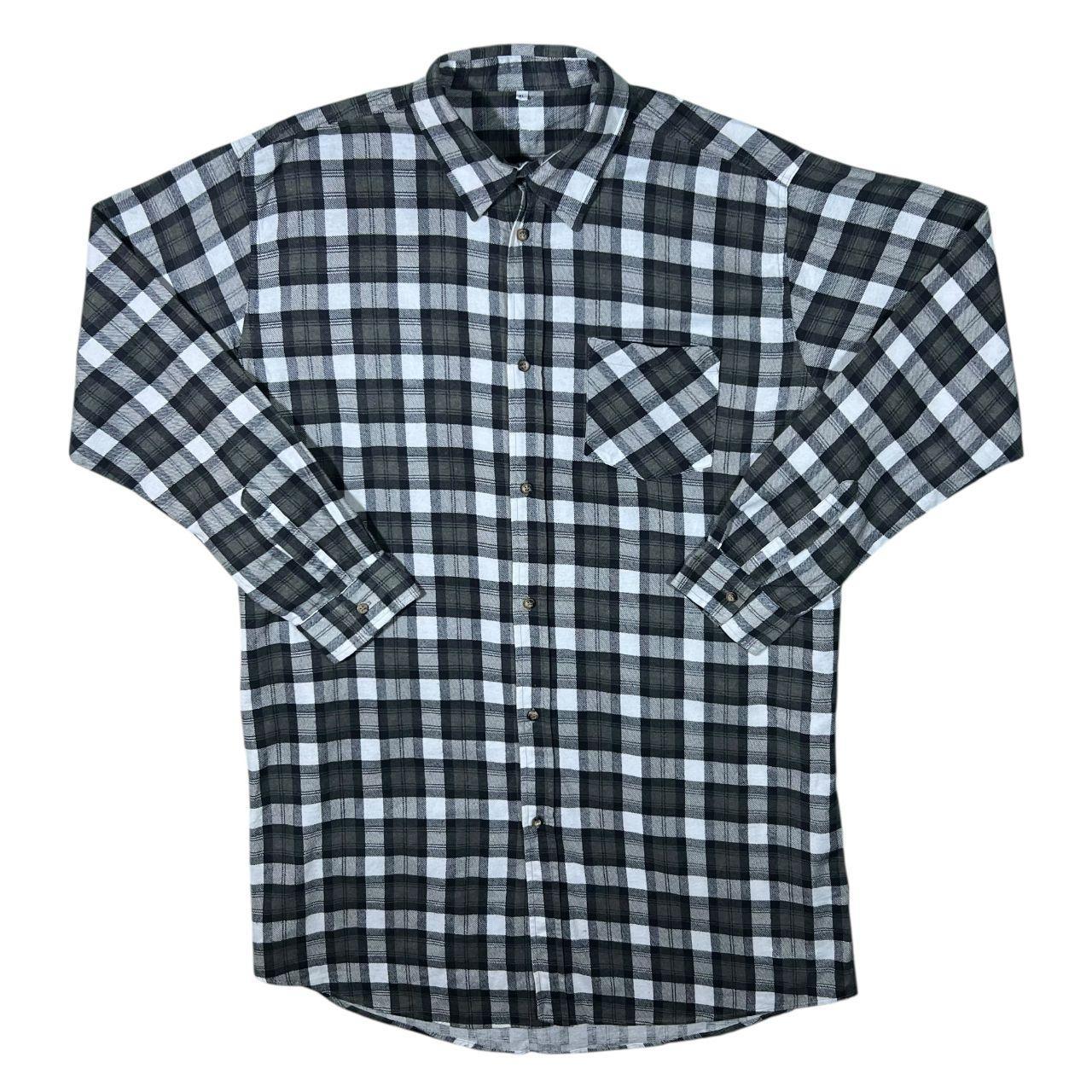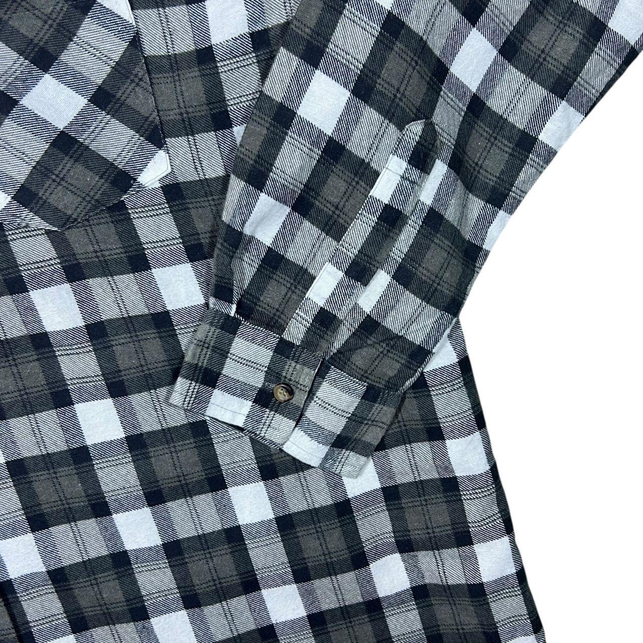 Vintage Black White Grey Plaid Check Cotton Longline Long Sleeve Flannel Shirt