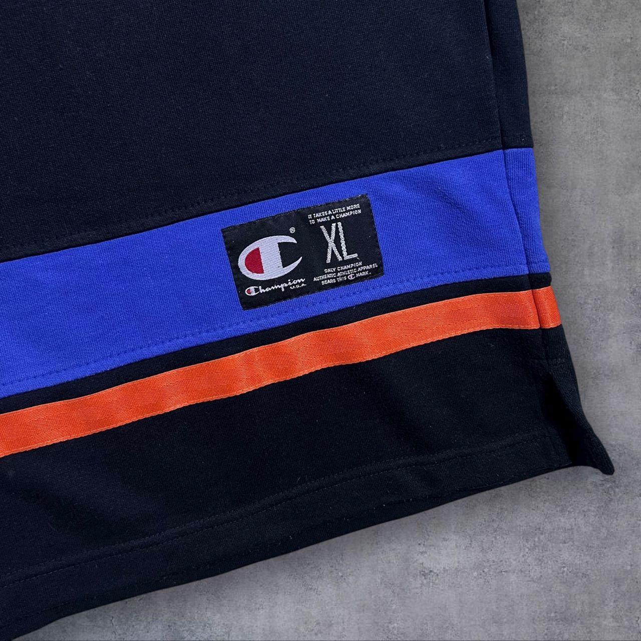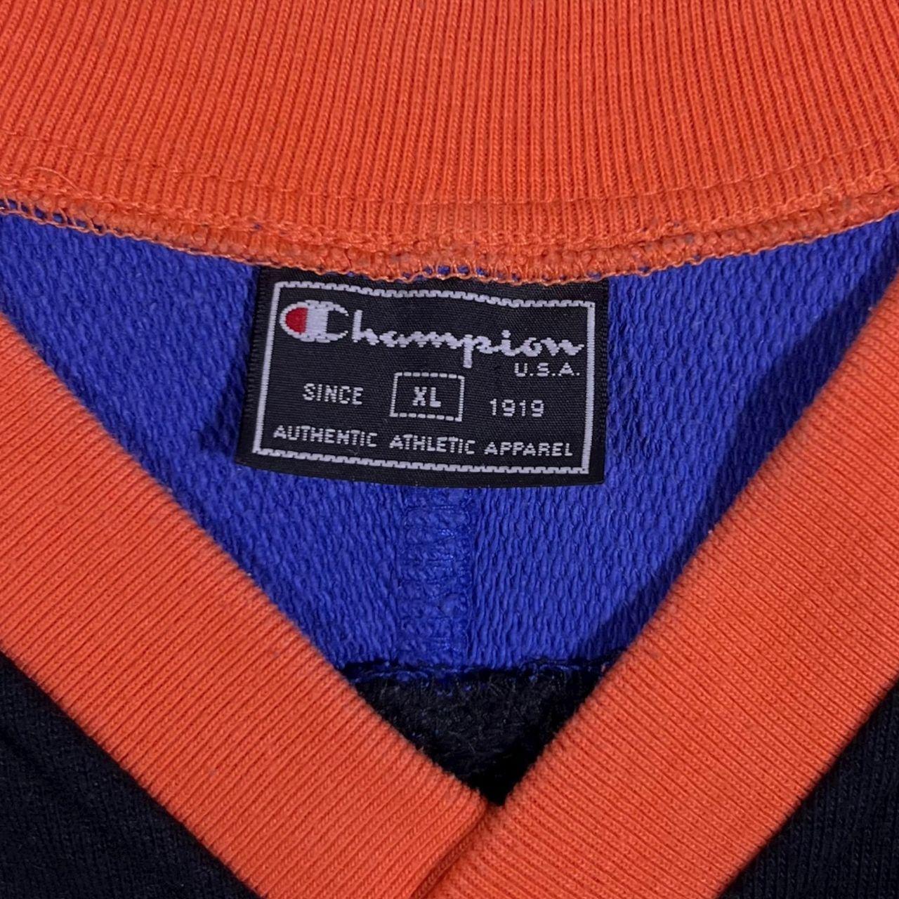 Vintage Champion Embroidered Spellout Colour Block V-Neck Sweatshirt