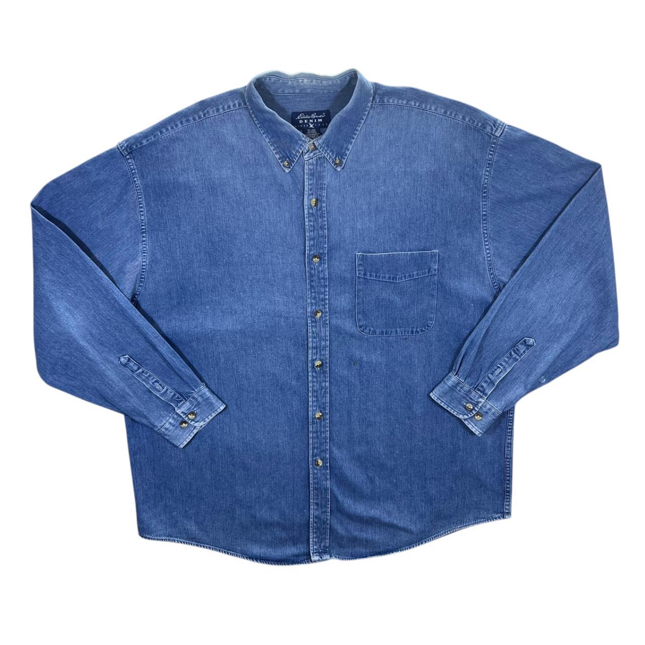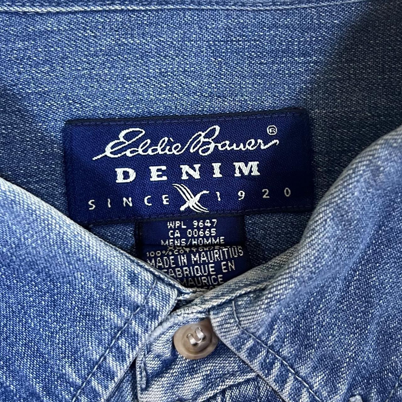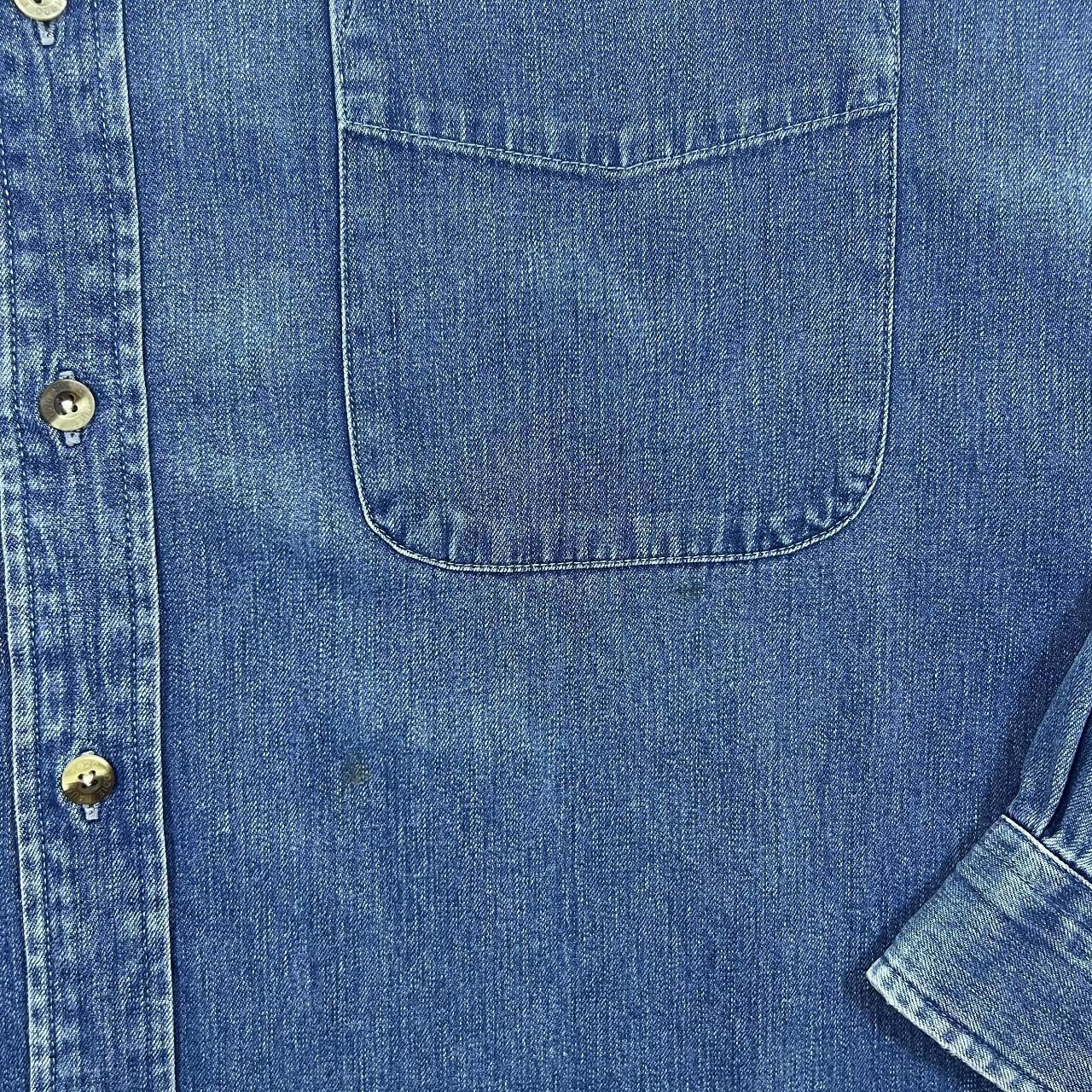 Vintage Eddie Bauer Classic Long Sleeve Button-Up Blue Denim Cotton Shirt