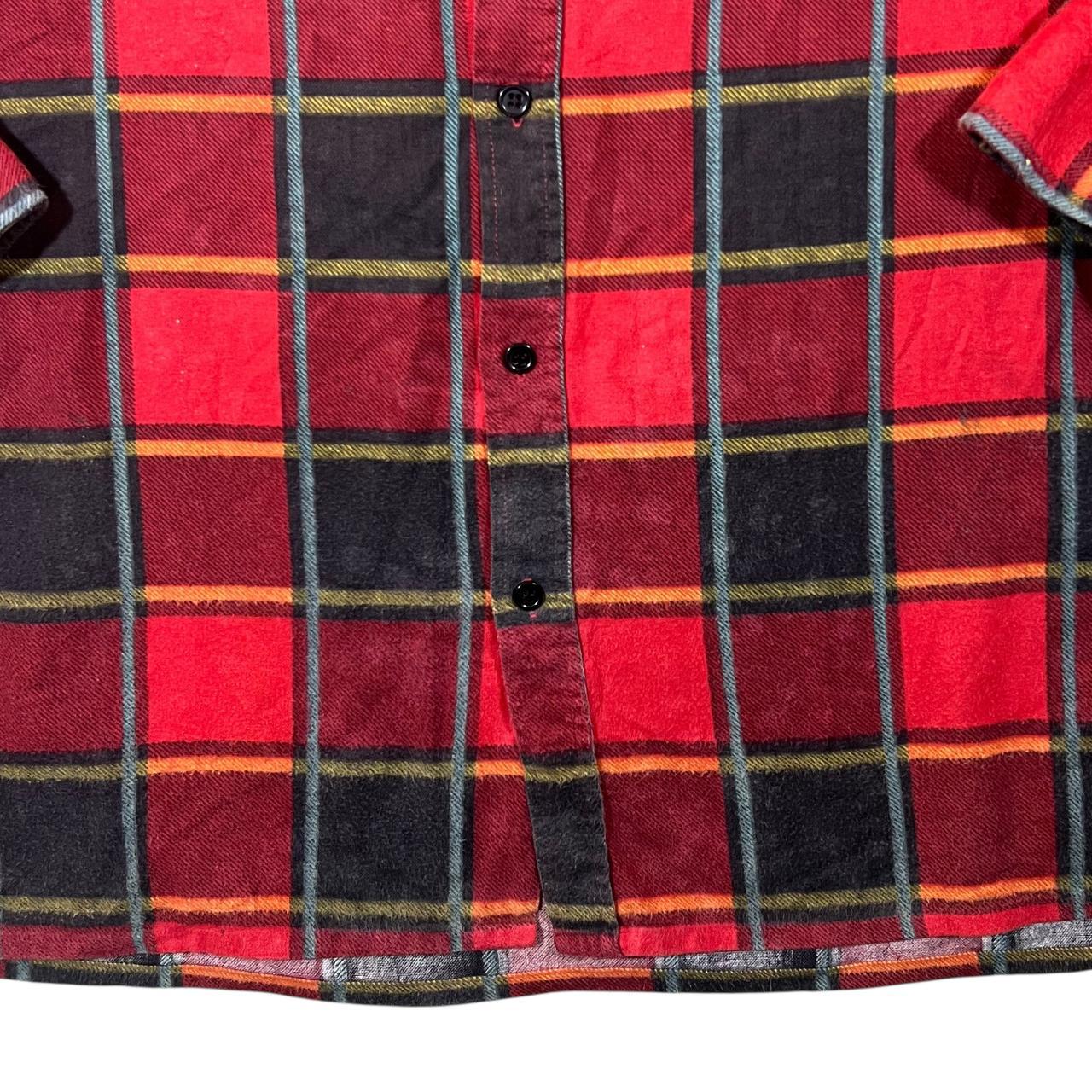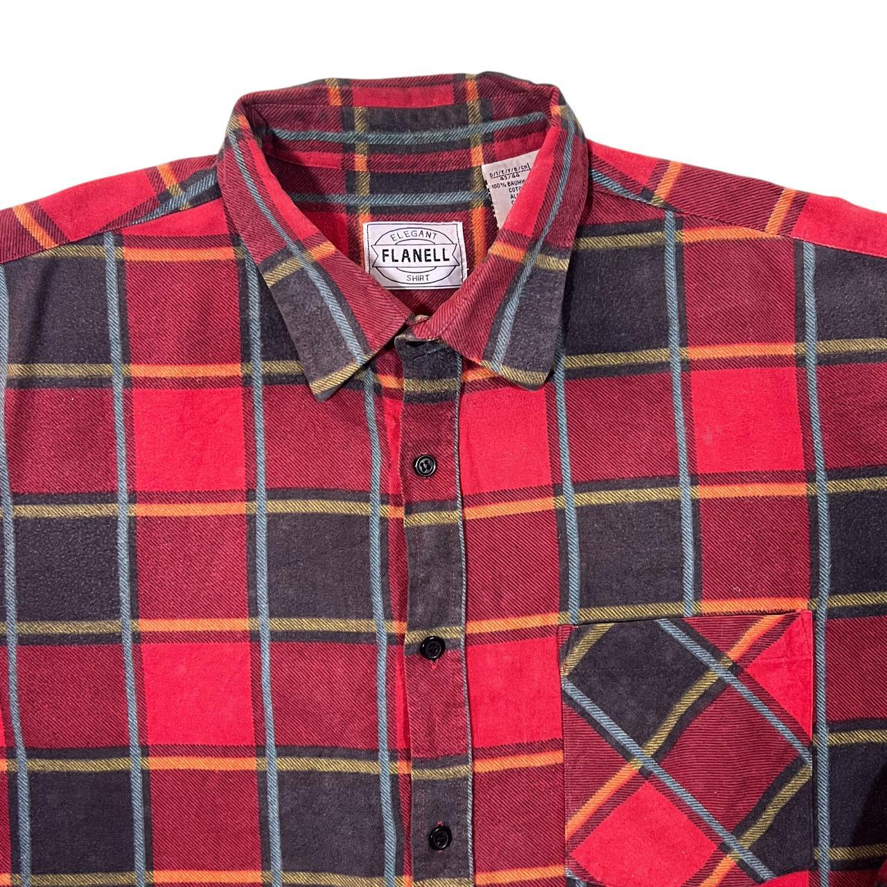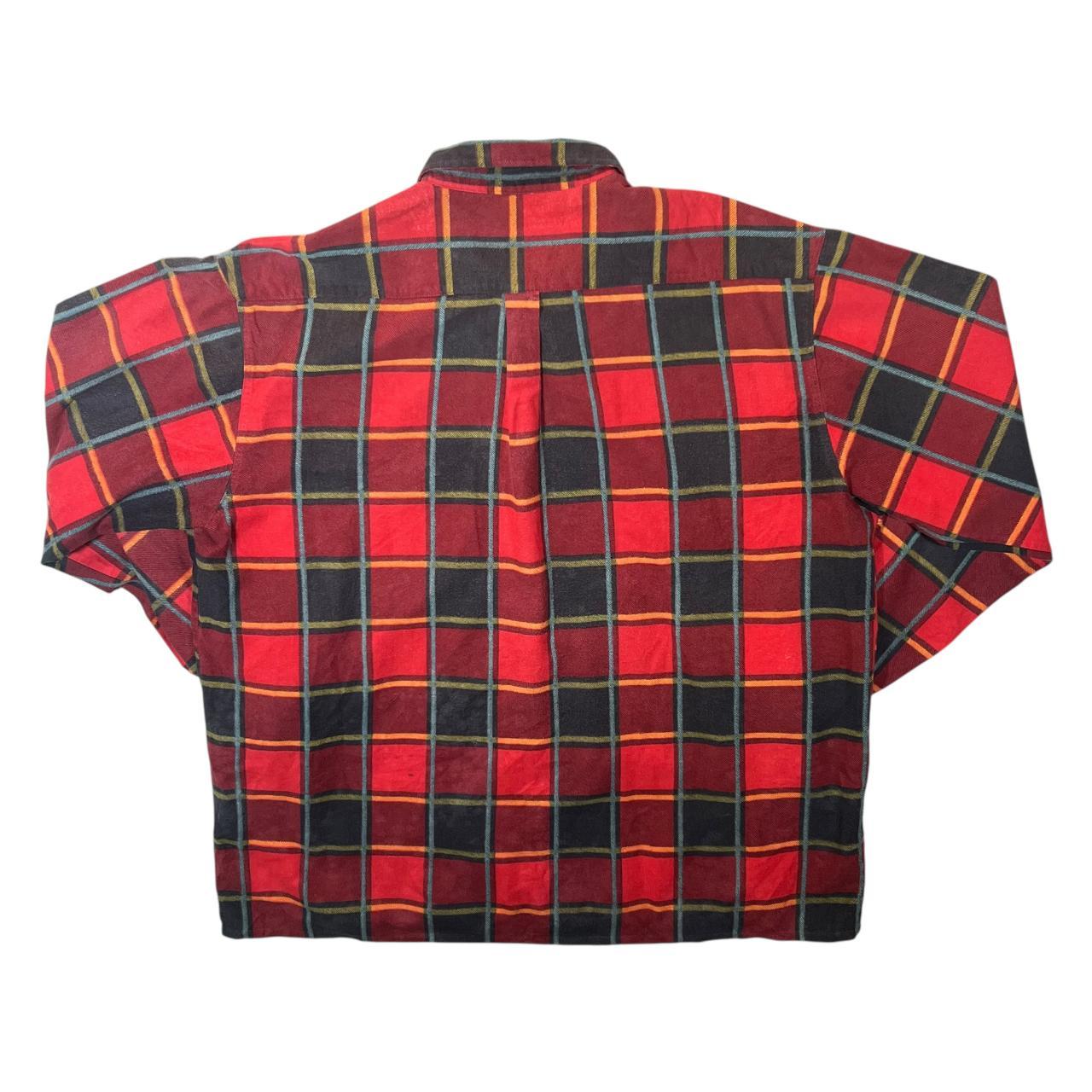 Vintage Elegant Flanell Red Multi Plaid Check Long Sleeve Cotton Flannel Shirt
