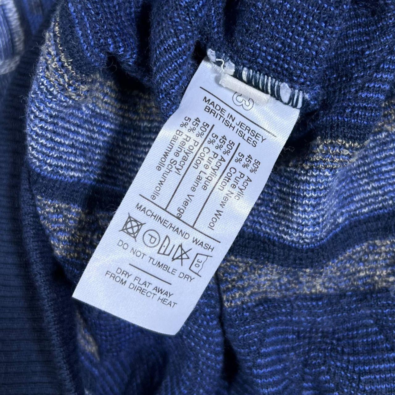 Vintage Pierre Sangan Blue Mix Grandad Patterned V-Neck Sweater Jumper