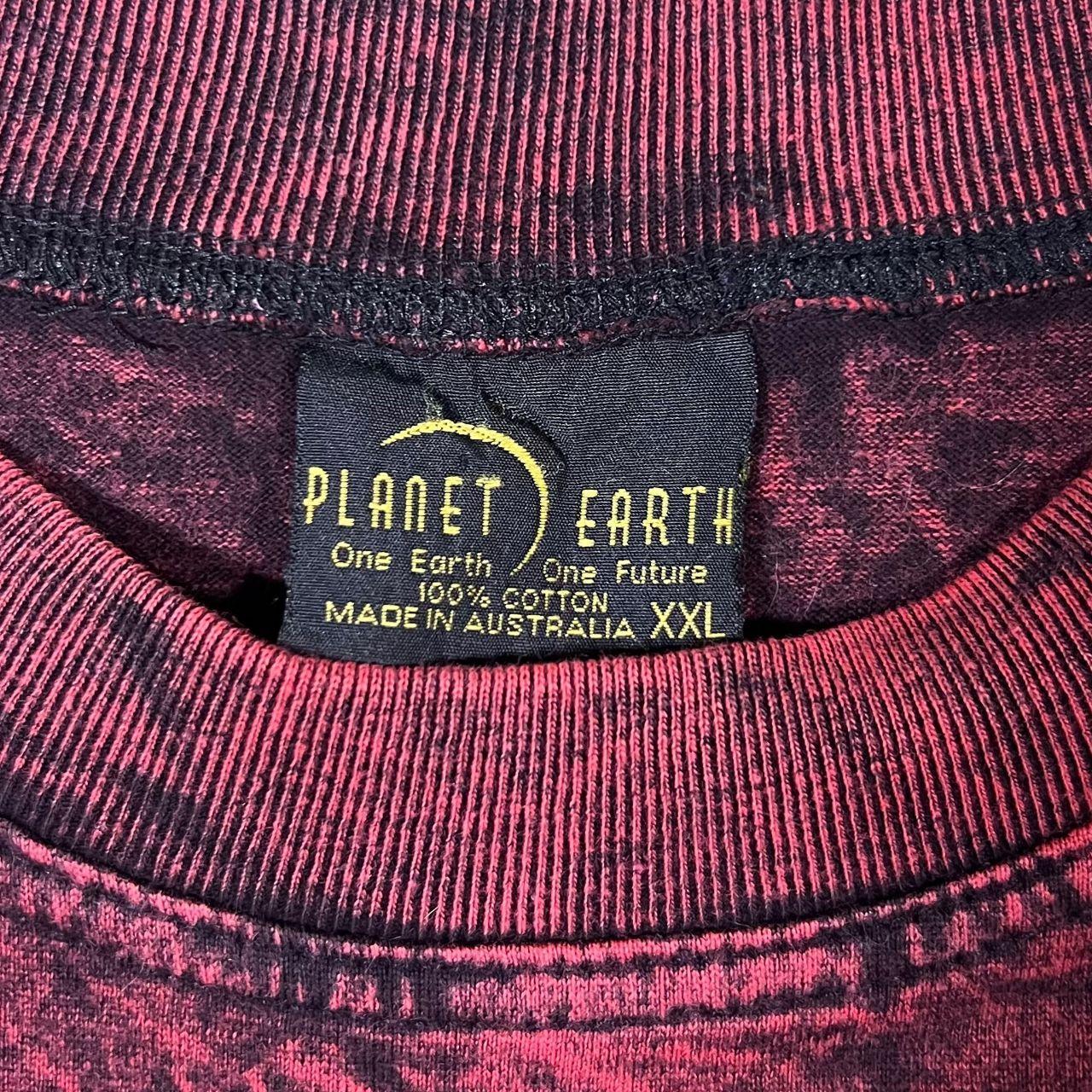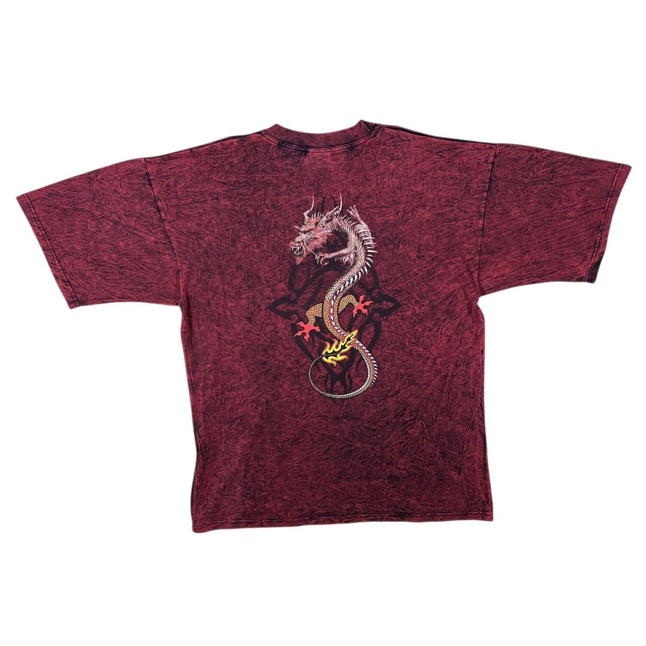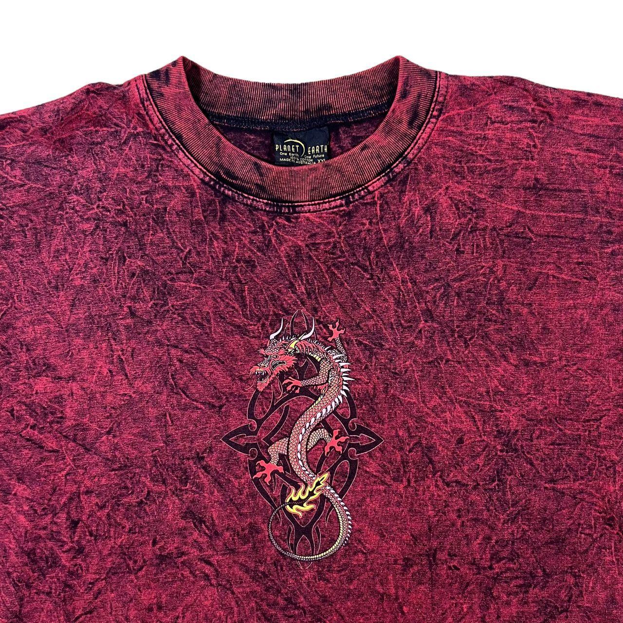 Vintage Planet Earth Gothic Dragon Graphic Red Tie Dye Acid Wash Cotton T-Shirt