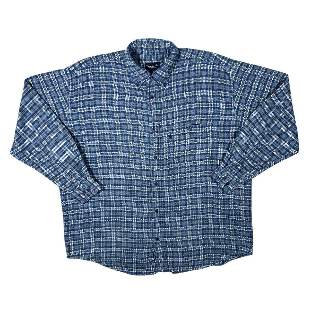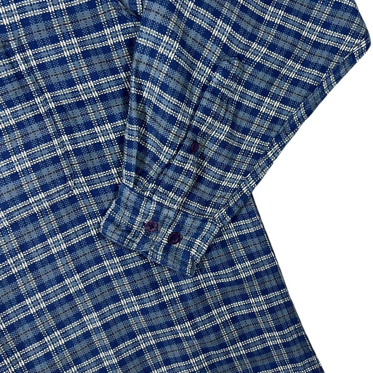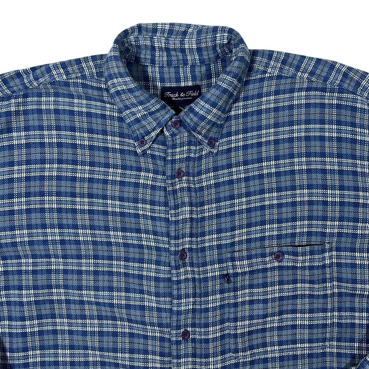 Vintage Track & Field Blue Plaid Check Long Sleeve Cotton Flannel Button-Up Shirt