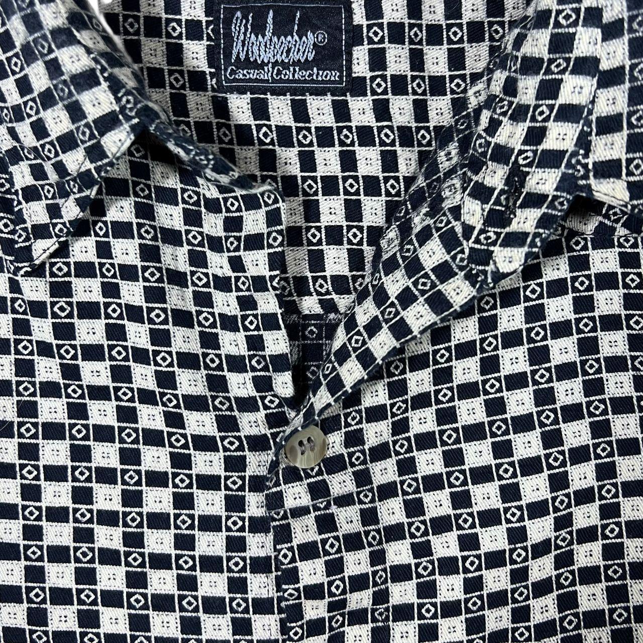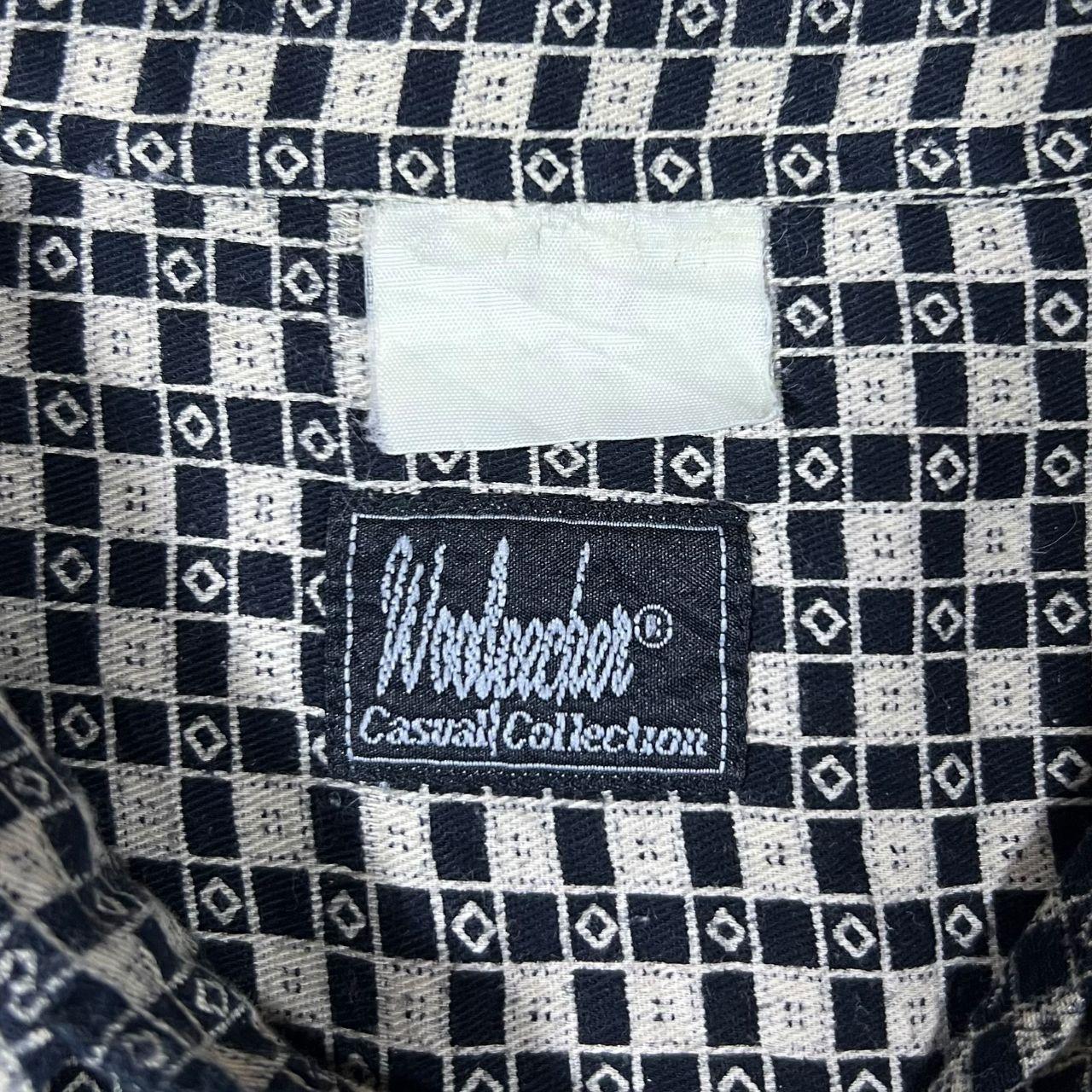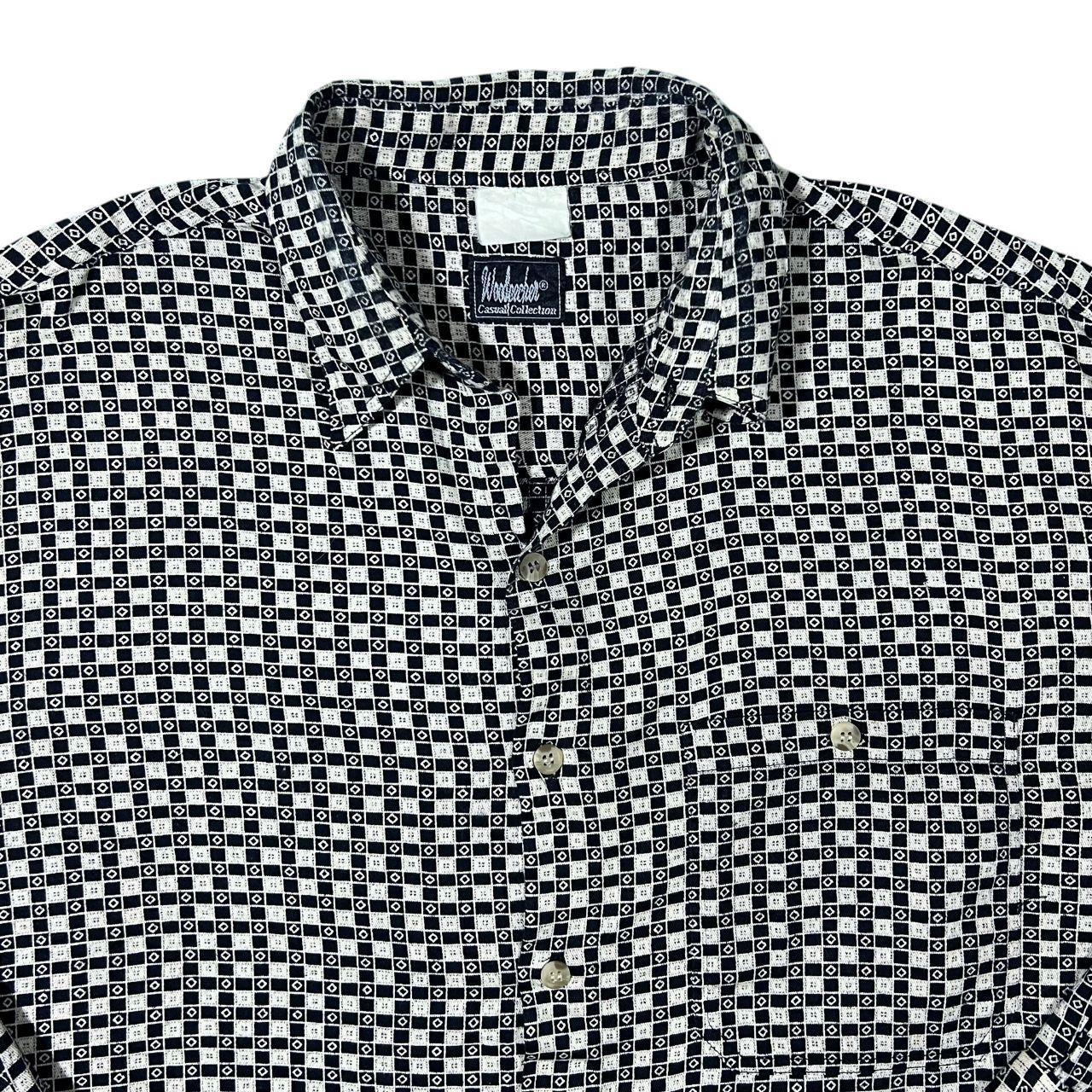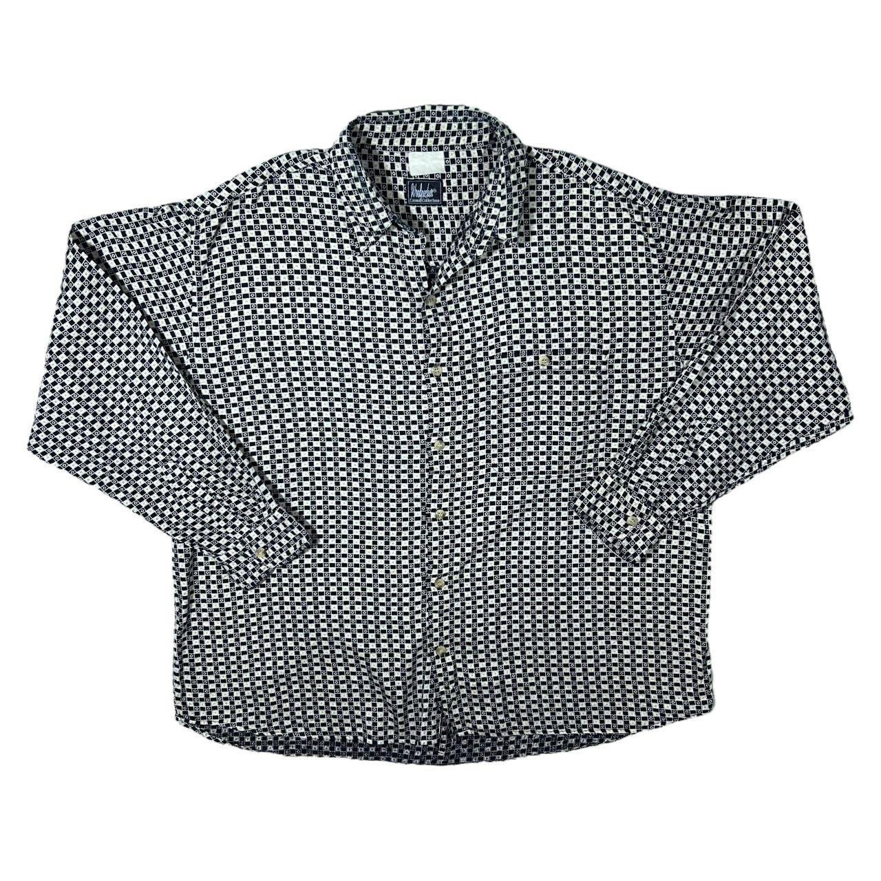 Size: Label faded but fits XXL (See measurements) Colour: Black/White Detail: Label faded but feels like a cotton blend material. Condition: Top button missing.