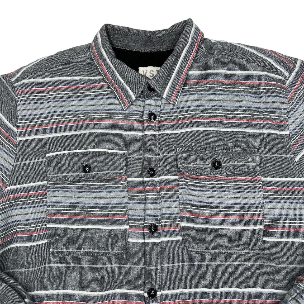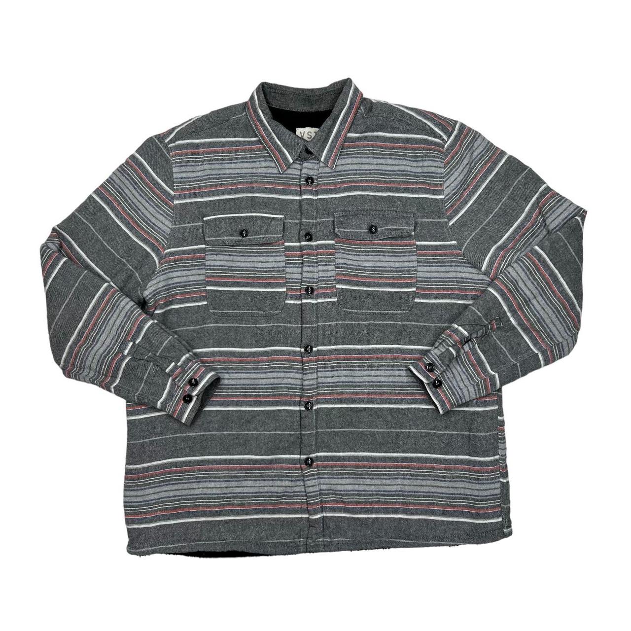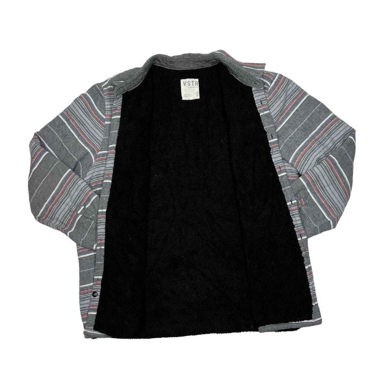 VSTR Blanked Striped Sherpa Teddy Fleece Lined Flannel Over Shirt