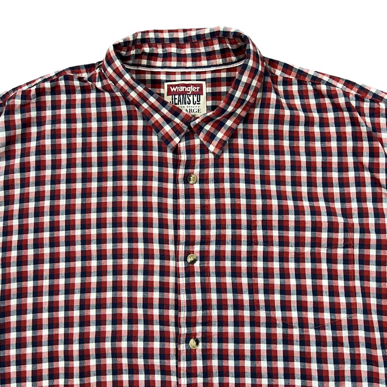 WRANGLER JEANS CO. Classic Plaid Check Long Sleeve Cotton ShirtSize: XXL (See measurements)Colour: Red/Navy/White CheckDetail: 100% cotton materialCondition: Light general wear as expectedMeasurements: Pit to Pit: 28.5”Length: 31”Shoulder to Cuff: 27”#9959