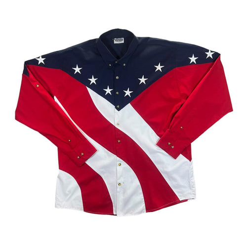 Vintage 90's GORTRUD Cowboy Western USA Flag Colour Block Long Sleeve Cotton Shirt