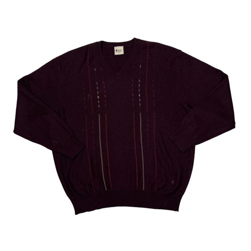 Vintage GABICCI Patterned Grandad Acrylic Wool V-Neck Knit Sweater Jumper