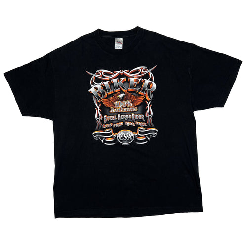 Early 00’s National Heritage LIVE HARD RIDE HARD Gothic Biker Spellout Graphic T-Shirt