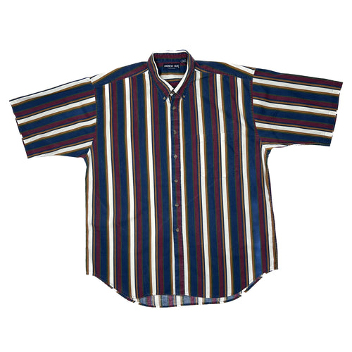 AMERICAN BLUE Made In USA Colour Block Striped Short Sleeve Button-Up Shirt