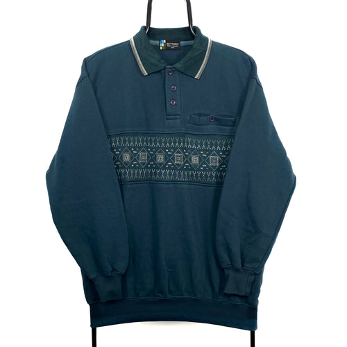 GUV'NORS Patterned Panel Grandad Collared Sweatshirt
