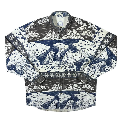 Vintage McNeal Animal Nature Wildlife Patterned Long Sleeve Shirt