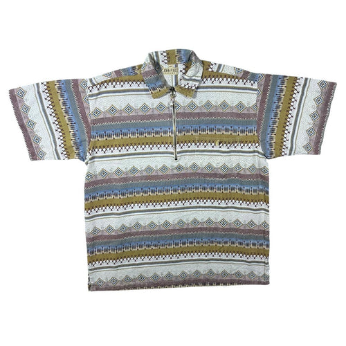 Vintage 90's John F. Gee Crazy Abstract Patterned 1/4 Zip Short Sleeve Cotton Shirt