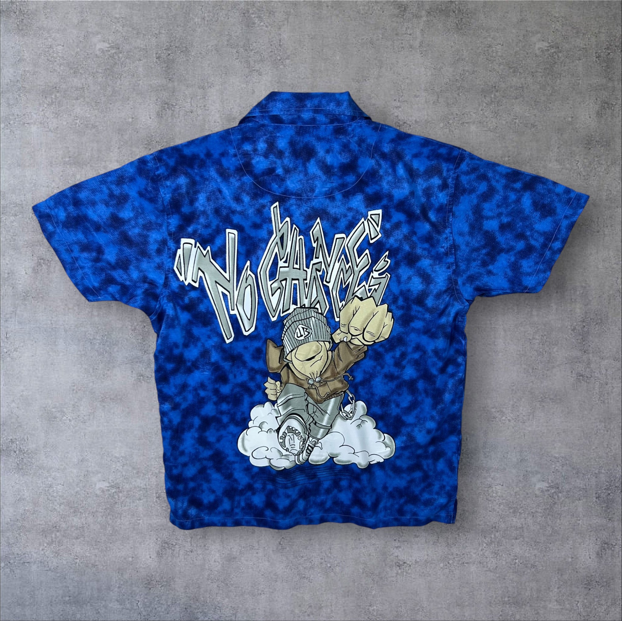 Early 00's No Chances Y2K Hip Hop Graffiti Graphic Blue Polyester Short Sleeve Shirt